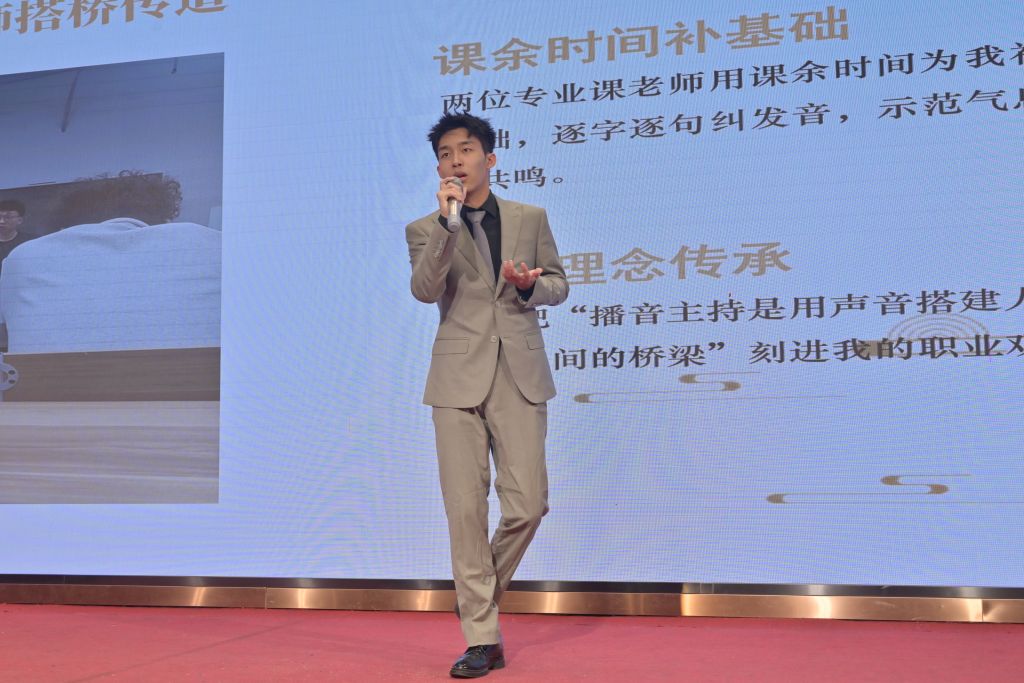 12月5日16:30,伴随着精彩的开场表演,比赛正式拉开帷幕。从初赛、复赛中脱颖而出的14名选手紧扣“感恩”主题,深情讲述成长历程中的感恩故事,真挚抒发对亲人、师友、学校、辽宁方大集团及党和国家的感恩之情。选手们以饱满的热情、生动的语言和真挚的表达,将感恩之心融入话语间,传递出感恩向善的正能量,赢得现场师生阵阵掌声。经过激烈角逐,最终播音2401班黄小桐、范芳洋等9名选手脱颖而出,分获一、二、三等奖。