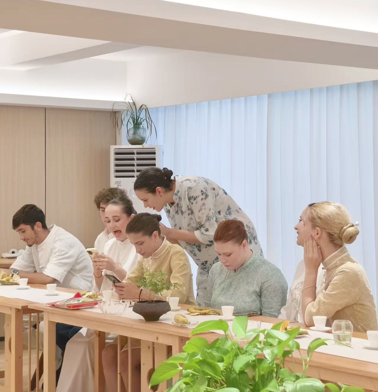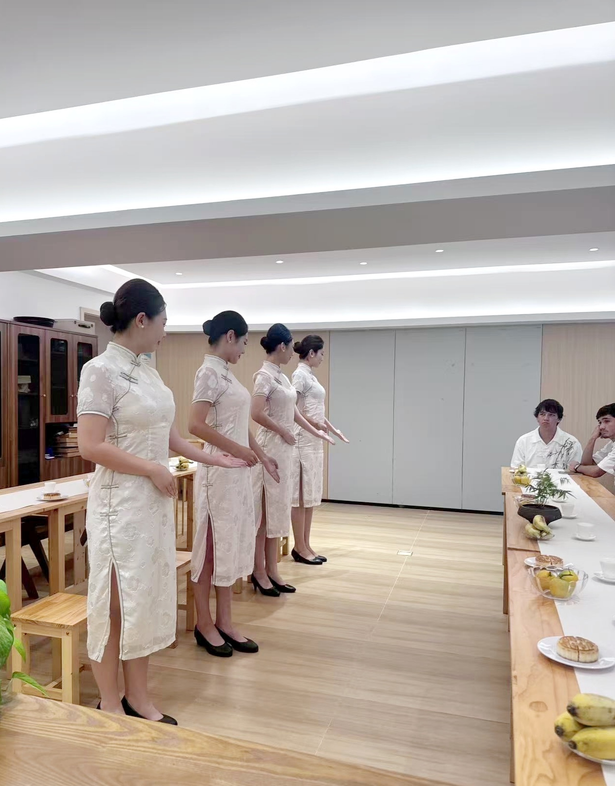 本次茶会以文化传播为基础,邀请留学生参加活动,融合茶艺表演、传统服饰体验、月饼品鉴等传统文化活动。现场特设礼仪服务,以优雅仪态奉茶导引,展现东方待客之道。参与者可沉浸式体验华服之美、茶道之韵与花艺之雅,在温馨氛围中感受团圆之意,共度一个充满中国文化温度的中秋佳节。